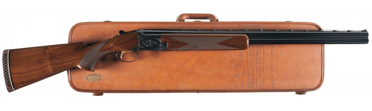 Manufactured in 1972. The barrels have a white bead front sight, a white mid bead sight, are choked modified/full and have 2 3/4 inch chambers with ejectors. Mounted on a multi-point checkered straight grain walnut forearm and pistol grip stock with factory recoil pad. Length of pull is 14 1/4 inches. With a Browning leatherette takedown hardcase.