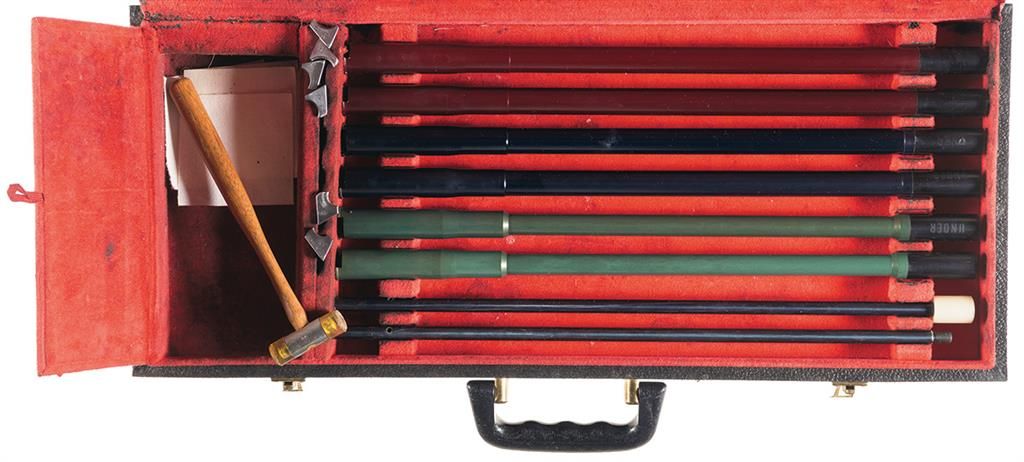 Manufactured in 1966. Both chokes are marked "**S", chambers are 2 3/4" and the LOP is 15". With a tan leatherette Browning takedown hardcase and a set of 20/28/.410 16 1/2" subgauge tubes with ejectors for each gauge, a small rubber mallet, a removal tool and a case for the subgauge tube and ejectors.