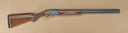 Belgian Browning superposed over/under 20ga shotgun, 26-1/2” barrels, choked Improved Cylinder and Cylinder. Shows round knob, short tang, single trigger, ventilated rib, serial #49842V8 with Browning hard-rubber recoil pad. The stock measures 13-1/2” to the end of the wood, 14-1/2” to the end of the added pad. The gun remains in very good used condition with 90-95% original blue, some loss on the bottom of frame and edges. The stock is good to very good with nice grain, sharp checkering, some minor wear and use. The bores are very good plus, just some normal use. Est: $700 - $1,400