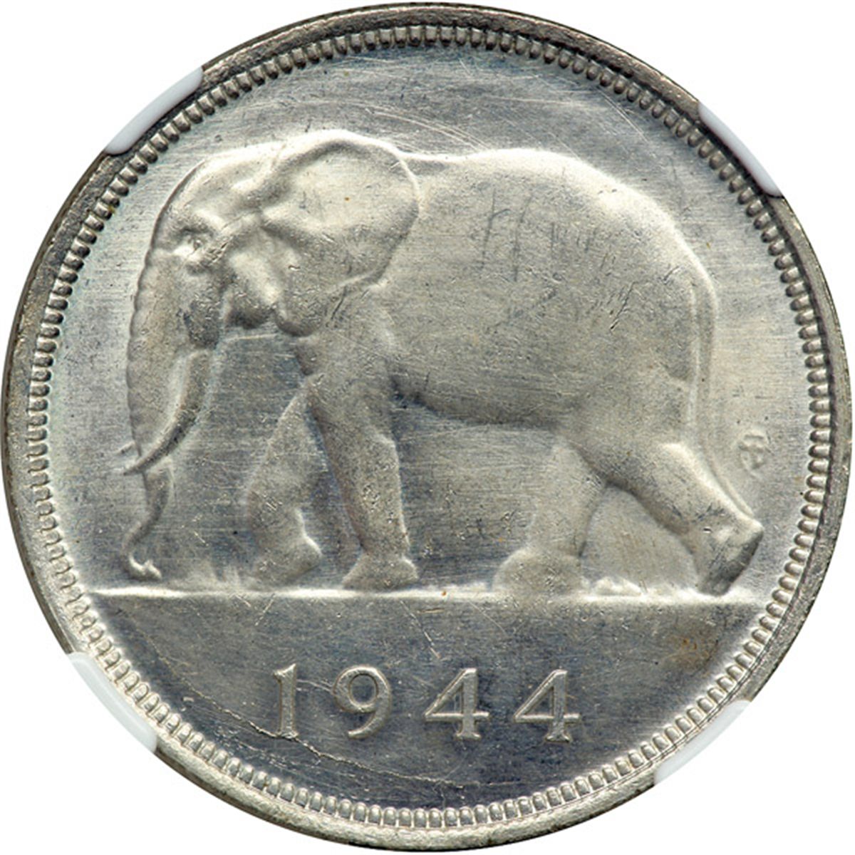 Belgian Congo. 50 Francs, 1944. Dav-11. Leopold III. Elephant. NGC graded Uncirculated, Details (Surface Hairlines).