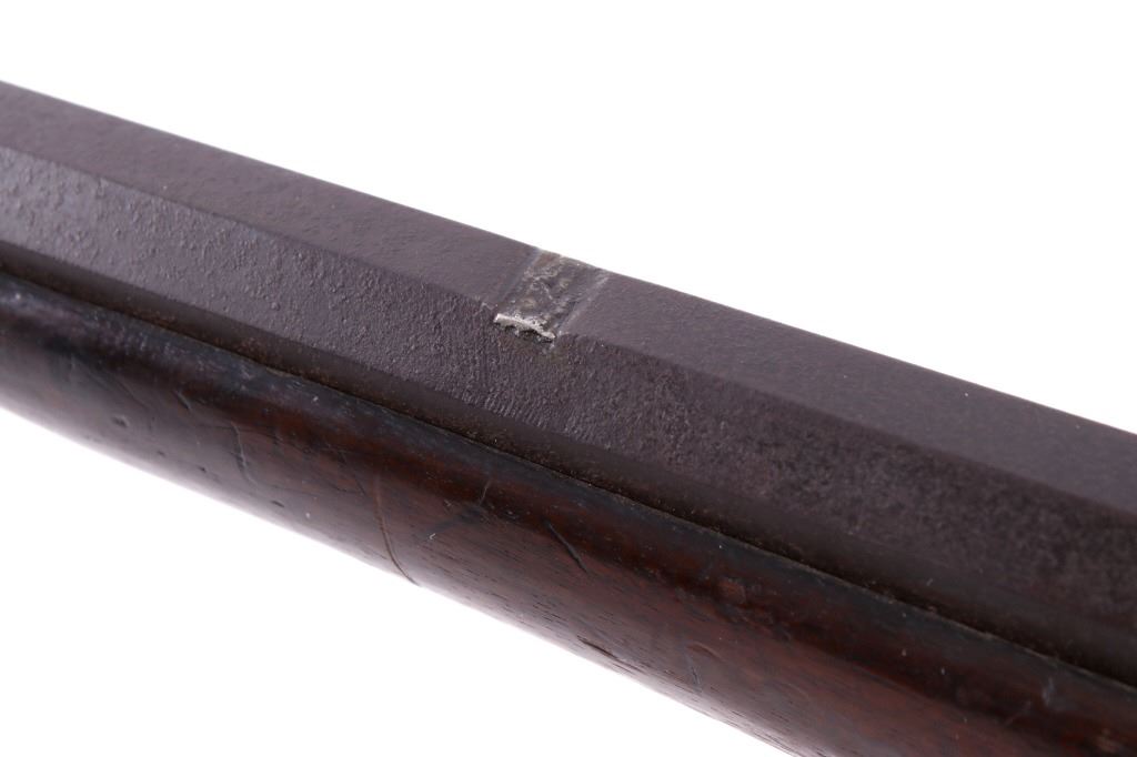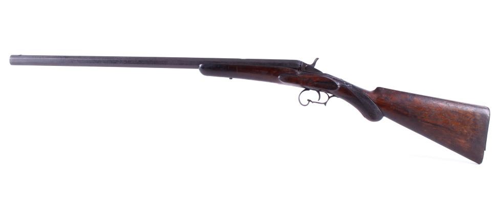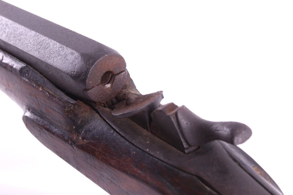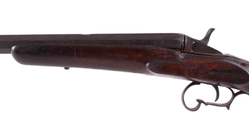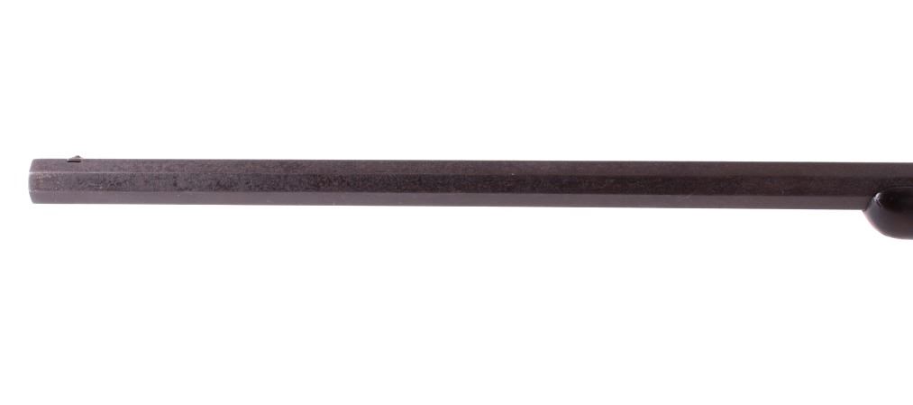 The lot features an original Belgian Flobert Style Warnant single shot 8mm parlor rifle. The rifle features a heavy bull 24 inch full octagon barrel, fixed front sight, ornate trigger guard, dark patina’d blue finish and a checkered walnut stock. The rifle originates from between the early 1880’s to early 1900’s. The piece shows no visible markings. The three main Flobert variants are described and illustrated in Single Shot Rifles And Actions by Frank De Haas. The rifle shows fair condition overall for its age with some dents and slight pitting in areas, there are two sizeable cracks in the walnut stock and the hammer works intermittently. Serial Number: No Serial Number This firearm qualifies as a Curio & Relic Long Gun, and requires FFL Transfer or NICS Background Check.