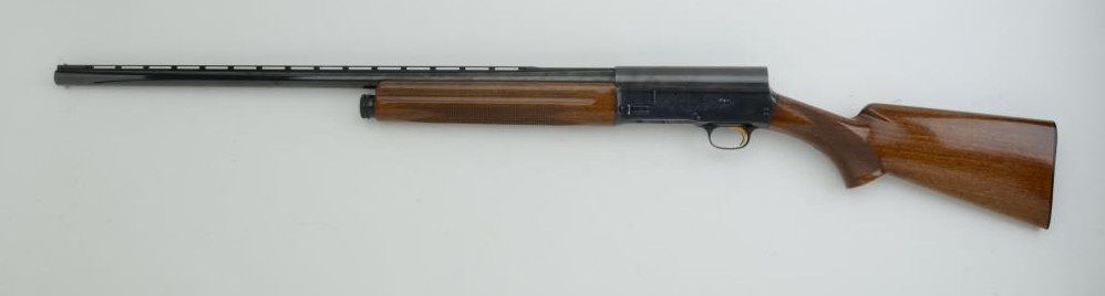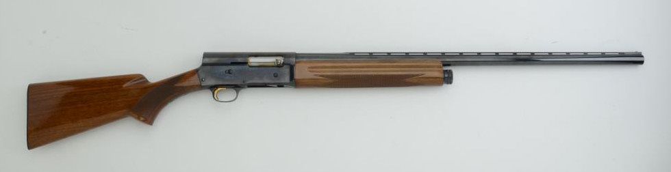 Belgian-made Browning Model A-5 semi-auto shotgun, 12 gauge, 27-1/2” barrel, blue finish, checkered wood stocks, #68G31908 in overall fine condition showing approx. 99% original finish, fine bore, crisp action,sharp markings and fine wood. Est.: $450-$900.