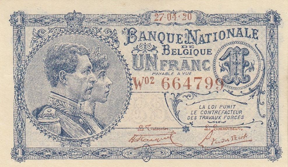 Belgium, 1 Franc, 1920, UNC, p92br/serial number: W02 664799