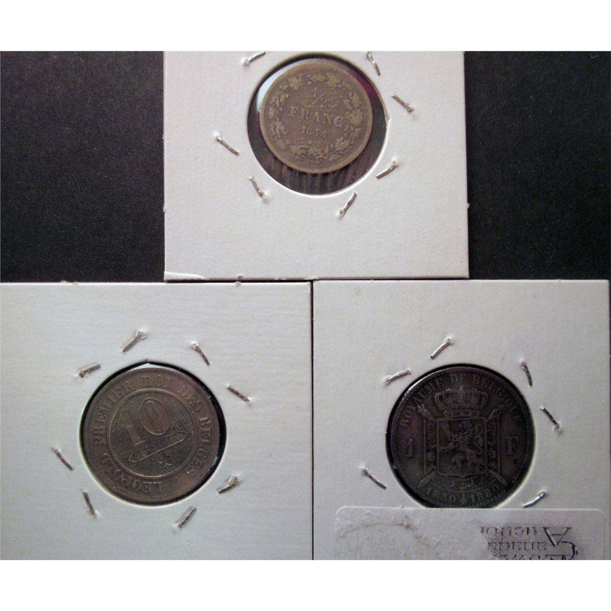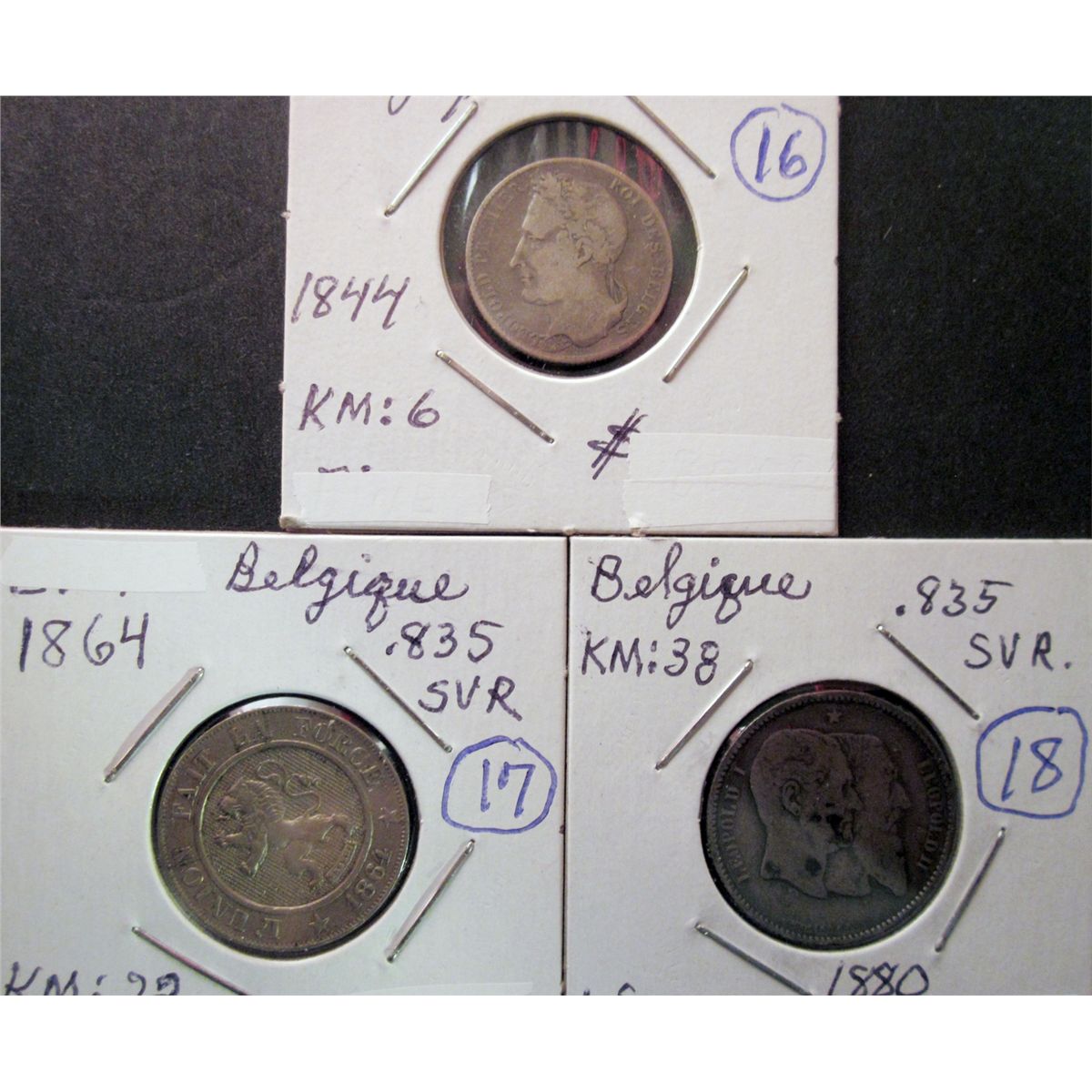 Belgium; 1844 ½ fr, 1864 10 centimos and 1880 1 fr. Three coins F-VF.
