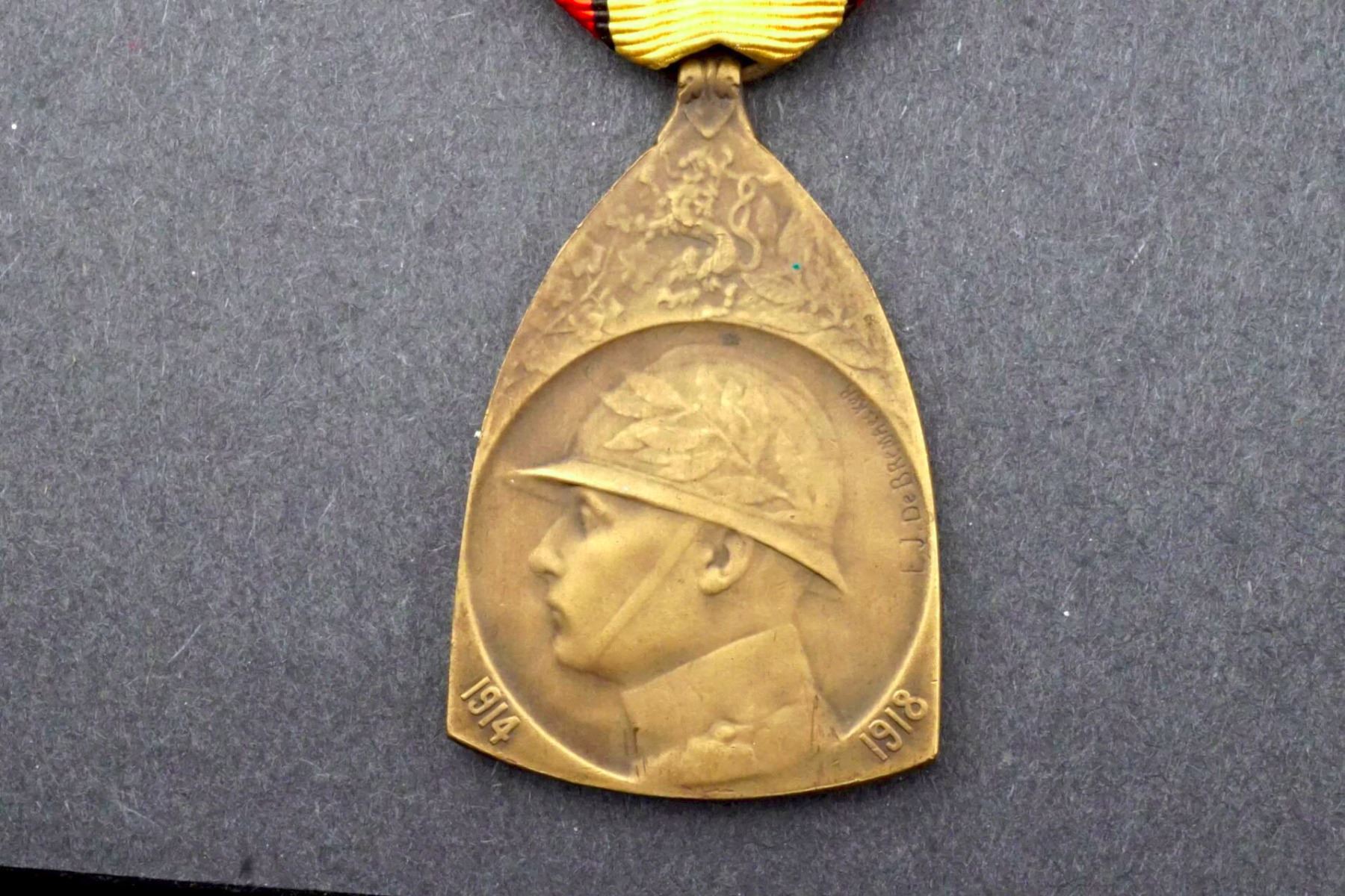 1 bronze medal; 1 gilt medal; 1 Commemorative, 1914-1918; 1 copper medalet, in bright UNC condition, with the bust of King Albert, left, and the reverse simply 1914, large, at the center. 25 mm, 6.3 grams.