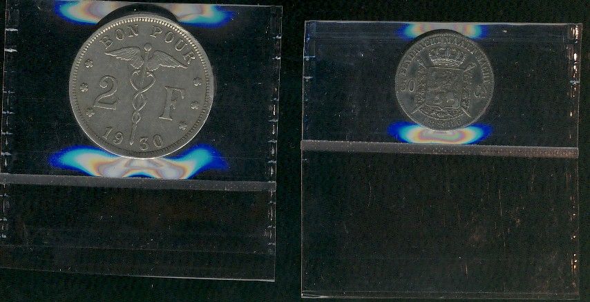 Belgium; 50 Centimes 1886 VF-30 and 2 Francs 1930 VF-20. Lot of 2 coins.
