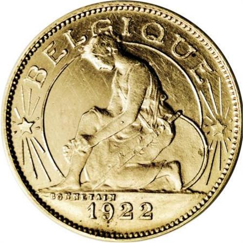 <B>Albert I gold Pattern Franc 1922,</B></I> French legends, similar to KM89, unlisted in the SCWC in gold. Plain edge Proof, some hairlines but quite attractive and very rare. Listed in Bogaert as 2136 and illustrated in Dupriez.<BR><BR><b>Shipping:</b> Coins & Currency (<a target="_blank" href="http://www.heritageauctions.com/common/shipping.php">view shipping information</a>)