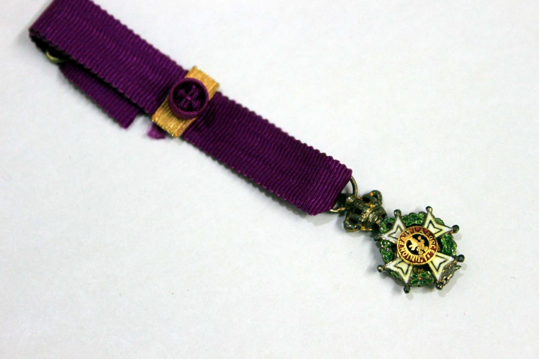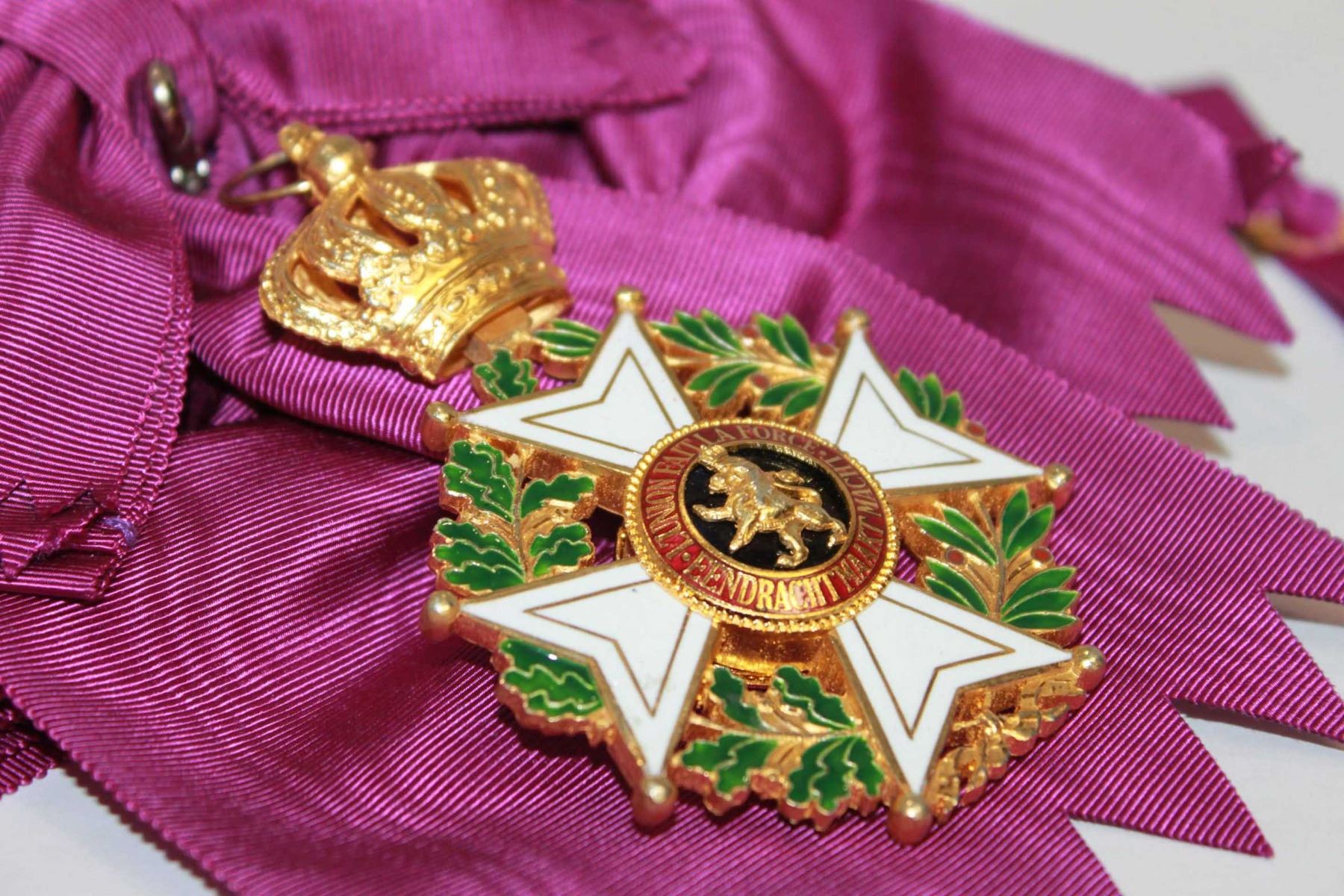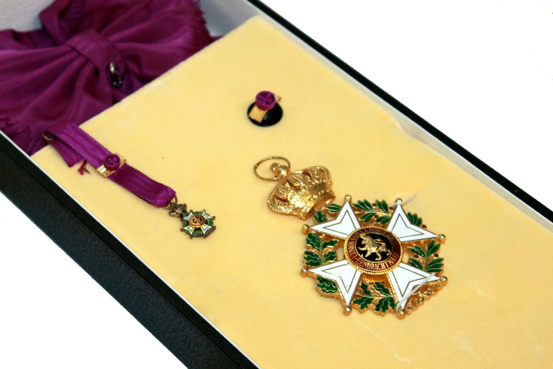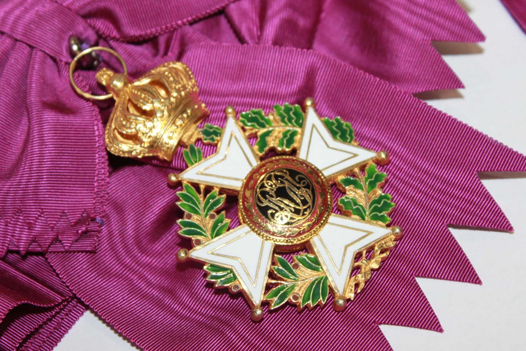 Est: 1897 Order comes with sash, minature order with 6 mm. rosette and 9 mm. rosette lapel pin. Manufactured by DeGreef, Brussels , it comes in a Degreef Order box but without Brest Star.