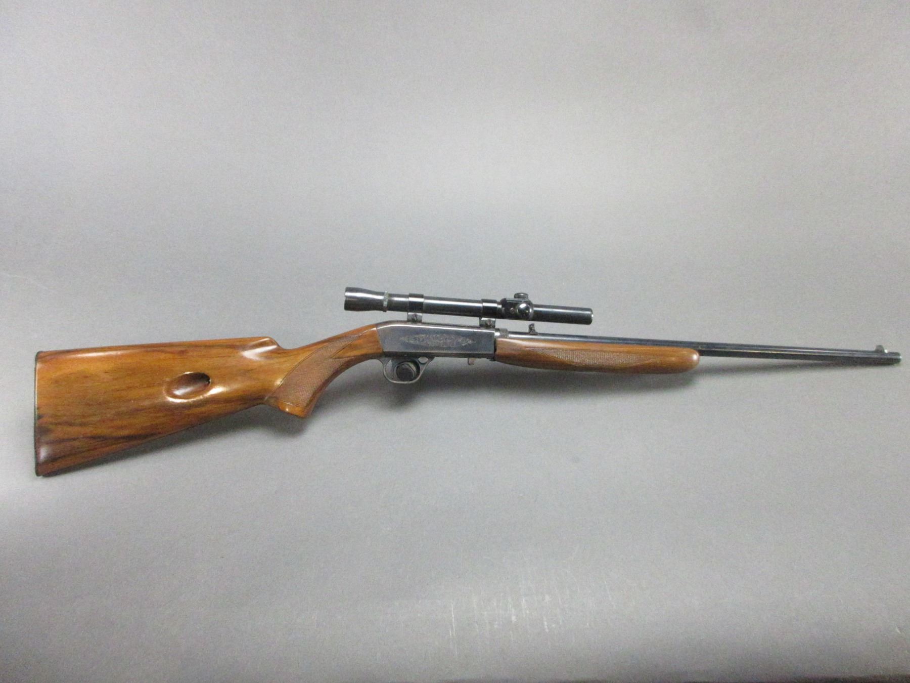 Belgium Made Browning Semi-Automatic Carbine- .22 LR- 19" Barrel- Checkered- Engraved- Weaver J 2.5X Scope- Good Condition- #5T27309