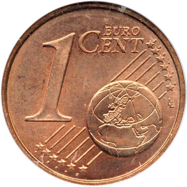 Belgium. Mint Error 1 Euro Cent, ND (1999-). ANACS MS64