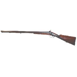 Belgium double barrel cap lock shot gun, 12 gauge, 30" barrels, engraved w/initials F.H., 45"L.