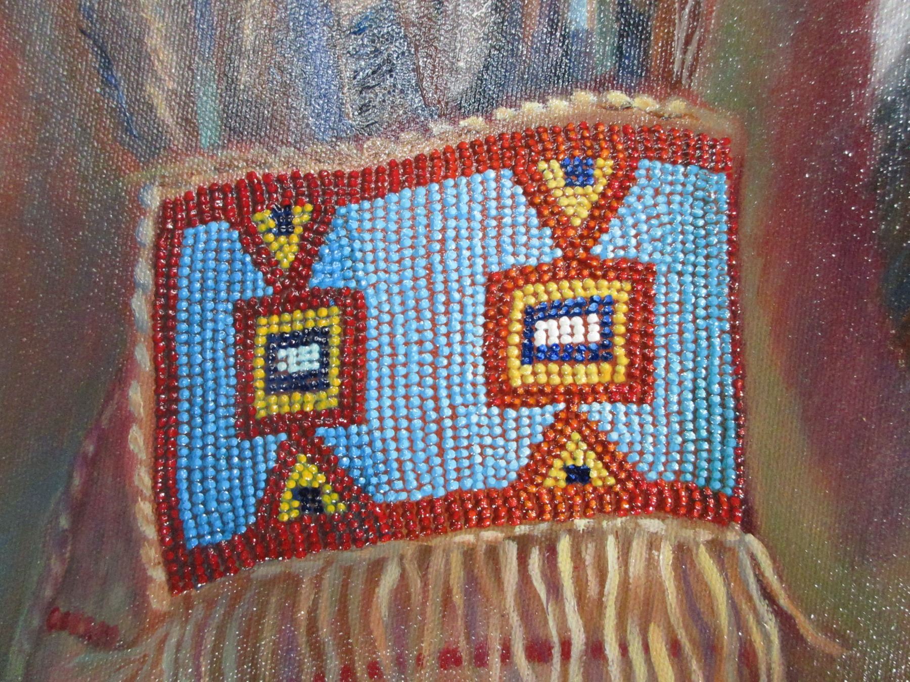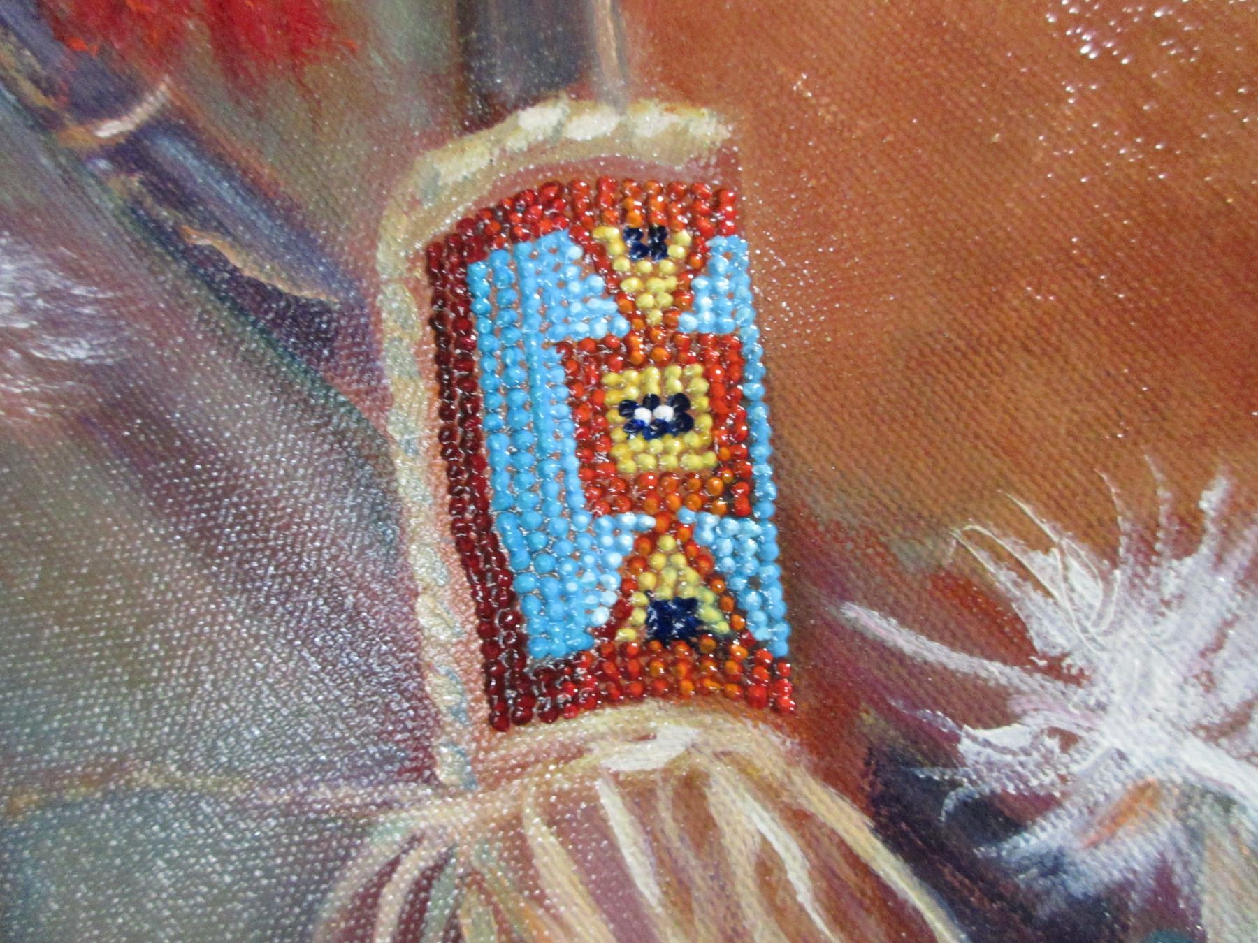 Believed To Be Original Signed Mary LeMessuries 2018 Picture On Canvas- Sioux Bow And Quiver 1860's-