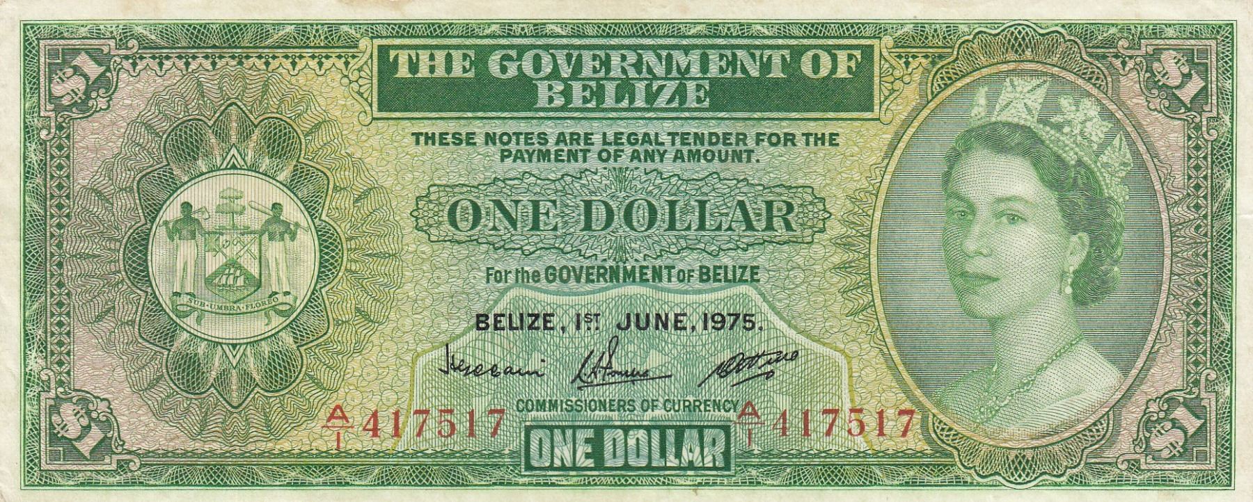 Belize, 1 Dollar, 1975, XF, p33bbr/Queen Elizabeth II portrait, Serial number: A/1 417517