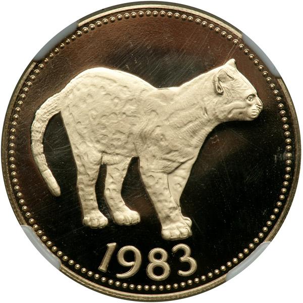 Belize. 100 Dollars, 1983. KM-73. Weight 0.0998 ounce. Margay jungle cat. Mintage only 494 struck. NGC graded Proof 69 Ultra Cameo.