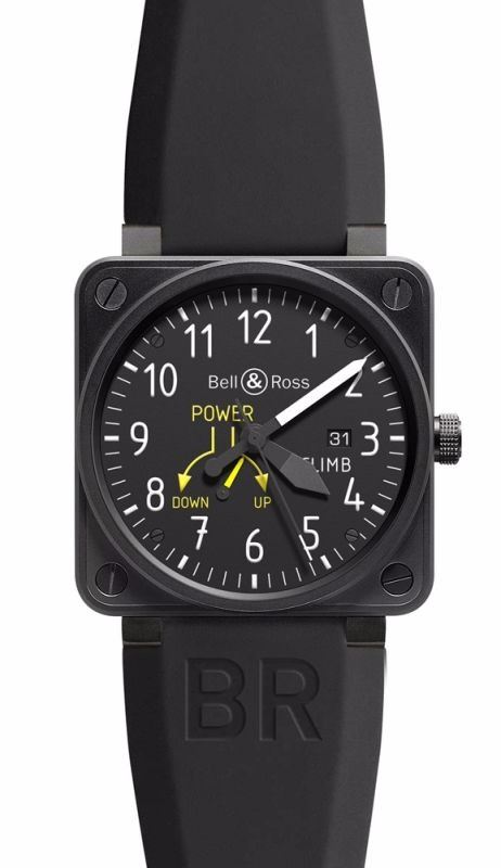 Model: BR01-97 Climb - CASE = [Material:Matte Black PVD Stainless Steel], [Case Diameter:46], [Case Thickness:10mm], [Case Back:Solid, LIMITED & NUMBERED EDITION TO 999 PIECES WORLDWIDE!!!], [Water Resistant:100 Meters - 330 Feet], [Crystal:Scratch Resistant Sapphire],; DIAL = [Color:Black],; MOVEMENT = [Type:Automatic Self Winding],; BAND = [Clasp:Tang Buckle], [Type:Black Rubber], (Usually ships in 2 to 4 weeks.)