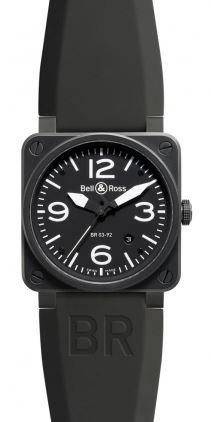 Model: BR03-92-Carbon - CASE = [Material:PVD & Steel], [Case Diameter:42], [Case Thickness:9.80mm], [Case Back:Solid], [Water Resistant:100 Meters - 330 Feet], [Crystal:Scratch Resistant Sapphire], DIAL = [Color:Black], MOVEMENT = [Type:Automatic Self Winding], BAND = [Clasp:Tang Buckle], [Type:Rubber Black], (Usually ships in 2 to 4 business days.)
