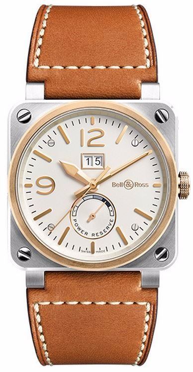 Model: BR0390-BICOLOR - CASE = [Material:Polished Stainless Steel], [Case Diameter:42], [Case Thickness:10mm], [Bezel:Fixed], [Case Back:Solid], [Water Resistant:100 Meters - 330 Feet], [Crystal:Scratch Resistant Sapphire],; DIAL = [Color:White],; MOVEMENT = [Type:Self Winding Automatic],; BAND = [Clasp:Tang], [Type:Brown Leather], (Usually ships in 2 to 4 weeks.)