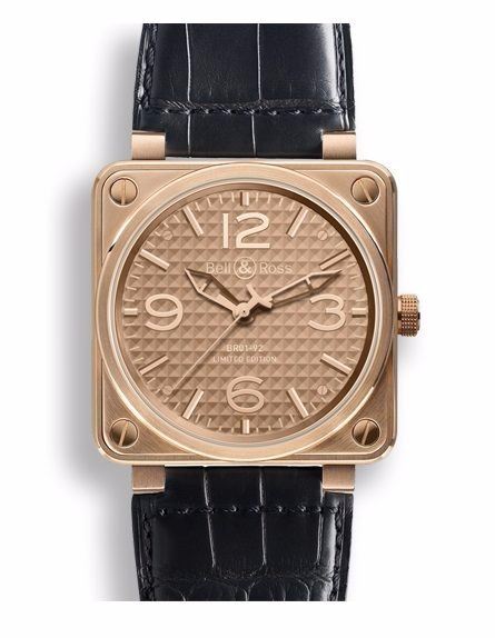 Model: BR0192-GOLD_INGOT - CASE = [Material:18kt Rose Gold], [Case Diameter:46], [Water Resistant:100 Meters - 330 Feet], [Crystal:Scratch Resistant Sapphire],; DIAL = [Color:Rose Gold with "Clous de Paris" design],; MOVEMENT = [Type:Automatic], [Crown:Screw Down],; BAND = [Clasp:Tang], [Type:Black Alligator Leather], (Usually ships in 2 to 4 weeks.)