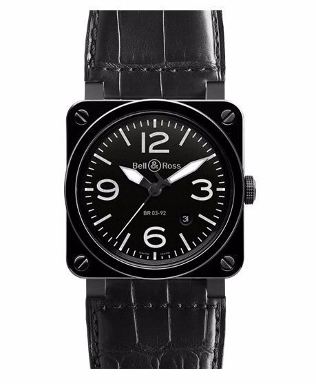 Model: BR0392-CER-BLP/SCR - CASE = [Material:Black Ceramic], [Case Diameter:42], [Water Resistant:100 Meters - 330 Feet], [Crystal:Scratch Resistant Sapphire],; DIAL = [Color:Black with Luminscent Hands],; MOVEMENT = [Type:Automatic],; BAND = [Clasp:Tang], [Type:Black Alligator Leather], (Usually ships in 2 to 4 weeks.)