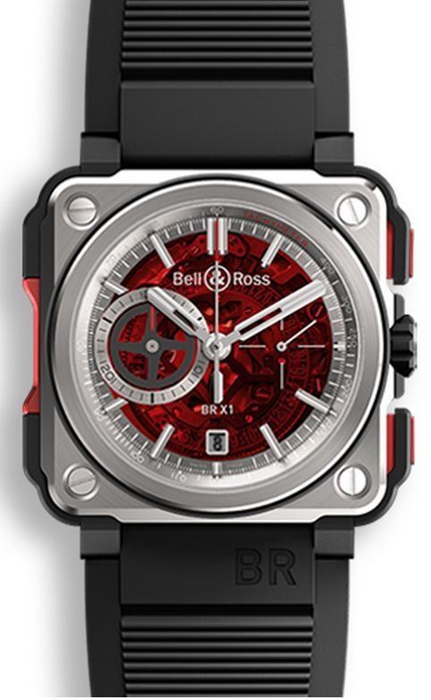 Model: BRX1-CE-TI-REDII - CASE = [Material:Titanium and Ceramic with Rubber], [Case Diameter:45], [Bezel:Fixed], [Case Back:Skeleton], [Water Resistant:100 Meters - 330 Feet], [Crystal:Scratch Resistant Sapphire],; DIAL = [Color:Red-Tinted Mineral Glass. Metal Skeleton],; MOVEMENT = [Type:automatic mechanical. Skeleton hours, minutes and small seconds. Skeleton date at 6 o'clock. Chronograph with 60-second and 30-minute timers.], [Crown:Screw Down],; BAND = [Clasp:Tang], [Type:Woven Black Rubber], (Usually ships in 2 to 4 weeks.)