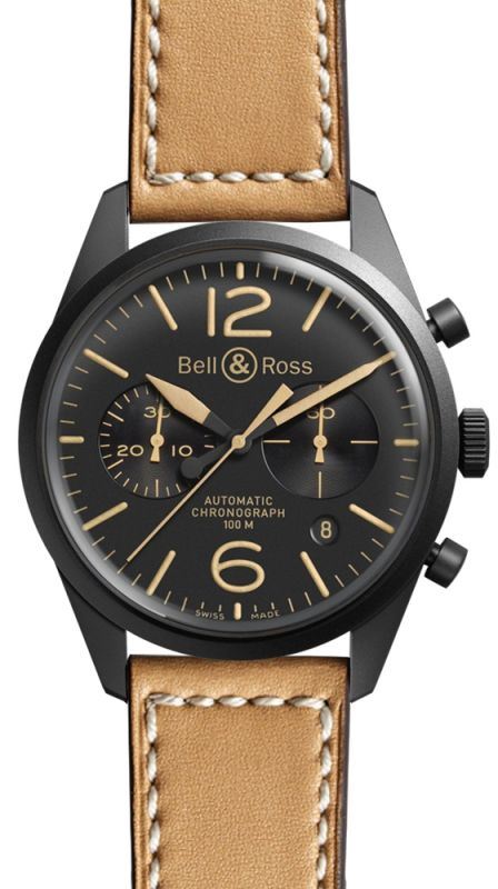 Model: BR-126 Heritage - CASE = [Material:Black PVD Steel], [Case Diameter:41], [Case Thickness:14mm], [Case Back:See-thru Sapphire crystal], [Water Resistant:100 Meters - 330 Feet], [Crystal:Scratch Resistant Sapphire], DIAL = [Color:Black], MOVEMENT = [Type:Automatic Self Winding], BAND = [Clasp:Tang Buckle], [Type:Beige Calfskin Leather], (Usually ships in 1 to 2 weeks.)