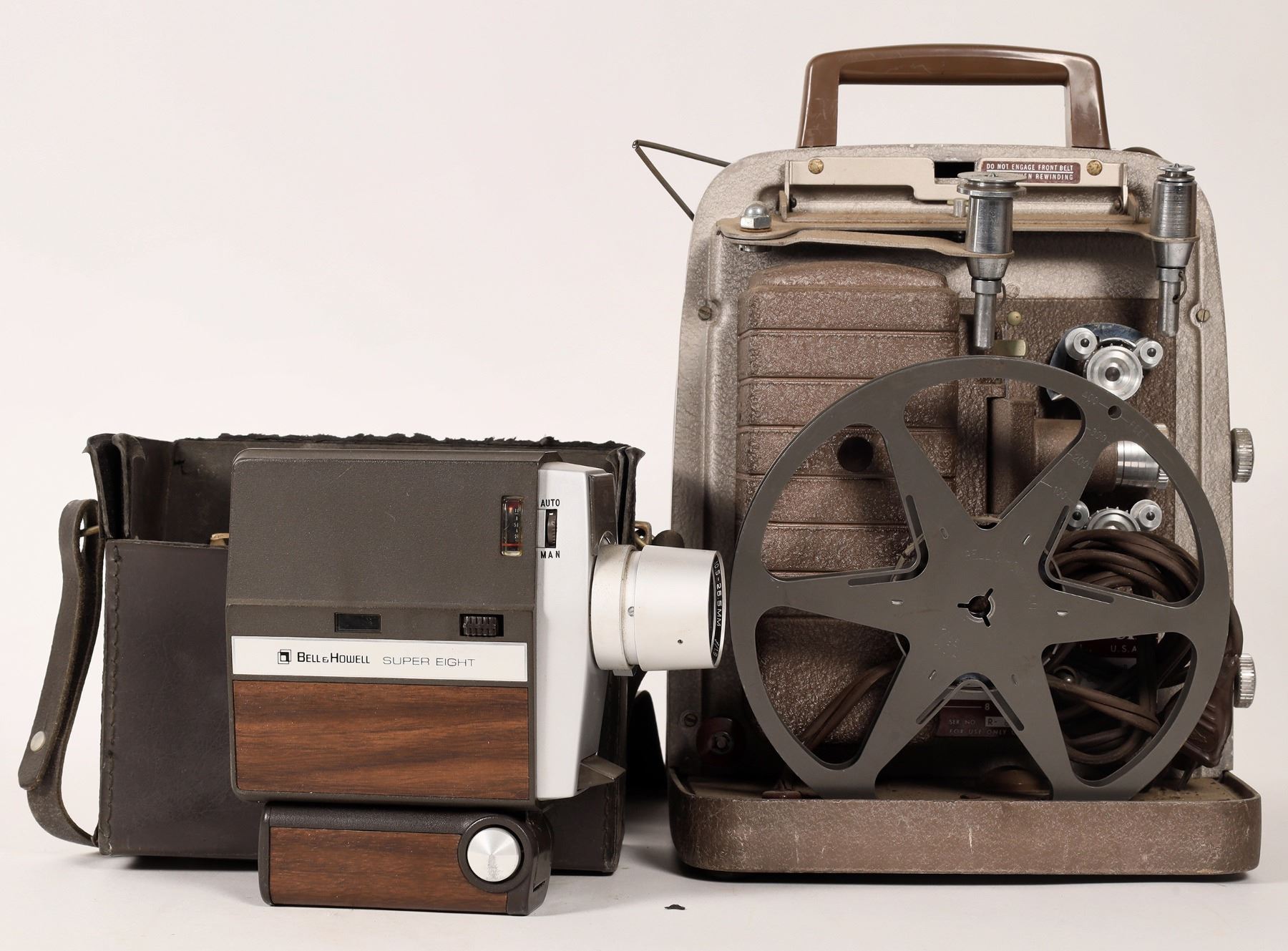 Bell & Howell 253A 8mm projector & 308 Super 8 camera in case with manual. Both untested, sold as is.