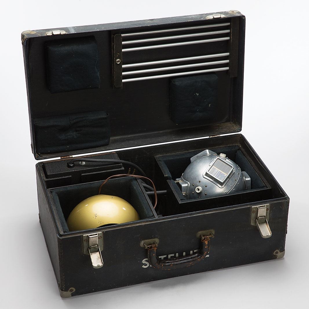 Accompanied by a letter of provenance from the original owner, in part: “The Bell Telephone Company asked me to make a couple ½ scale models of their new Telstar Satellite then they asked me to make one with Solar Cells that transmitted sound. They gave me this Vanguard Satellite to remove and use its Solar Cells. I did not want to destroy the Vanguard so I purchased Solar Cells from a company in El Segundo, California and made a working Telstar model for them. I often share my Vanguard with my students explaining the fantastic developments in today’s communication Satellites.”