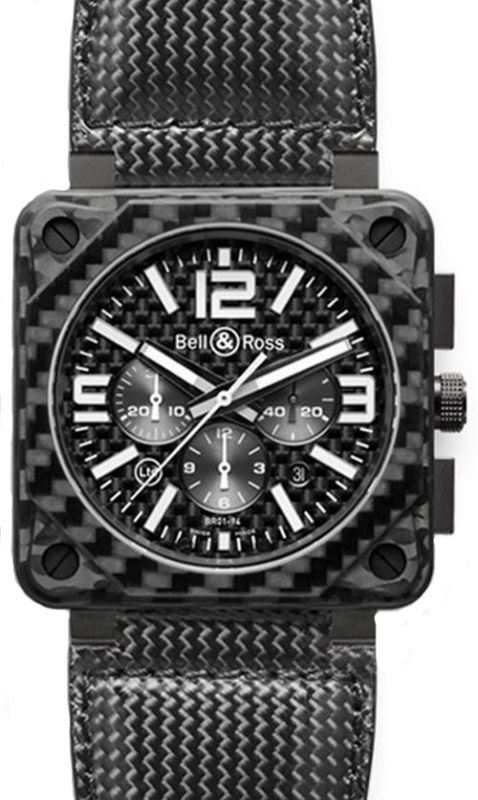 Model: BR0194-CA FIBER - CASE = [Material:Carbon Fiber], [Case Diameter:46], [Bezel:Fixed], [Case Back:Skeleton], [Water Resistant:100 Meters - 330 Feet], [Crystal:Scratch Resistant Sapphire], DIAL = [Color:Black carbon fiber], MOVEMENT = [Type:Automatic Self Winding hours, minutes, seconds. Three-counter chronograph (60s, 30mn and 12h accumulators). Date.], [Crown:Screw Down], BAND = [Clasp:Tang], [Type:Carbon fiber and black rubber straps.], (Usually ships in 2 to 4 weeks.)