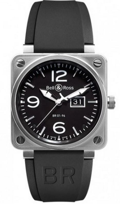 Model: BR0196-BL-ST - CASE = [Material:Satin-Brushed Steel], [Case Diameter:46], [Bezel:Fixed], [Case Back:Skeleton], [Water Resistant:100 Meters - 330 Feet], [Crystal:Scratch Resistant Sapphire], DIAL = [Color:Black. Numerals, index and hands covered in a photo-luminescent coating.], MOVEMENT = [Type:Automatic hours, minutes, seconds. Large date with two independent discs (units of 1 and 10).], [Crown:Screw Down], BAND = [Clasp:Tang], [Type:Black rubber and heavy-duty synthetic fabric straps.], (Usually ships in 2 to 4 weeks.)