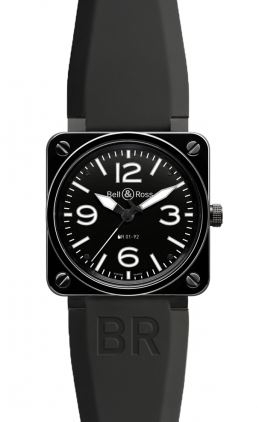 Model: BR01-92-Black-Ceramic - CASE = [Material:Ceramic], [Case Diameter:46], [Case Back:Solid], [Water Resistant:100 Meters - 330 Feet], [Crystal:Scratch Resistant Sapphire], DIAL = [Color:Black], MOVEMENT = [Type:Automatic Self Winding], BAND = [Clasp:Tang Buckle], [Type:Rubber Black], (Usually ships in 2 to 4 business days.)