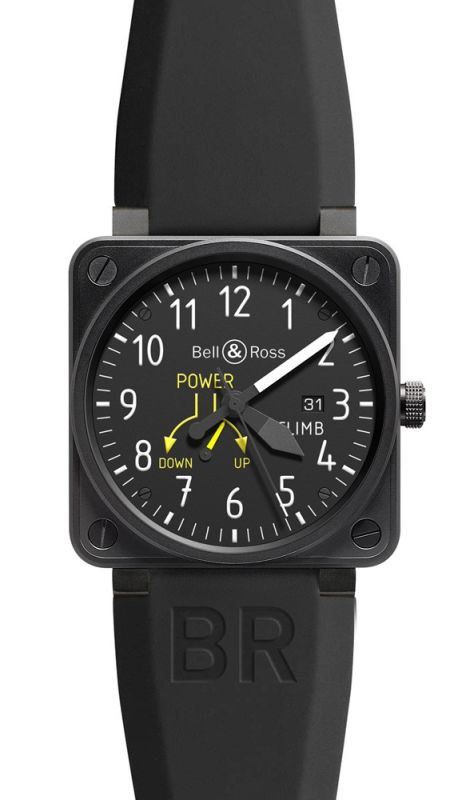 Model: BR01-97 Climb - CASE = [Material:Matte Black PVD Stainless Steel], [Case Diameter:46], [Case Thickness:10mm], [Case Back:Solid, LIMITED & NUMBERED EDITION TO 999 PIECES WORLDWIDE!!!], [Water Resistant:100 Meters - 330 Feet], [Crystal:Scratch Resistant Sapphire], DIAL = [Color:Black], MOVEMENT = [Type:Automatic Self Winding], BAND = [Clasp:Tang Buckle], [Type:Black Rubber], (Usually ships in 2 to 4 weeks.)