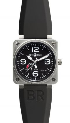 Model: BR01-97-Reserve-De-Marche - CASE = [Material:PVD], [Case Diameter:46], [Case Back:Solid], [Water Resistant:100 Meters - 330 Feet], [Crystal:Scratch Resistant Sapphire], DIAL = [Color:Black], MOVEMENT = [Type:Automatic Self Winding], BAND = [Clasp:Tang Buckle], [Type:Rubber Black], (Usually ships in 2 to 4 business days.)