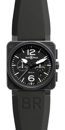 Model: BR03-94-Carbon - CASE = [Material:PVD & Steel], [Case Diameter:42], [Case Thickness:12.6mm], [Case Back:Solid], [Water Resistant:100 Meters - 330 Feet], [Crystal:Scratch Resistant Sapphire], DIAL = [Color:Black], MOVEMENT = [Type:Automatic Self Winding Chronograph], BAND = [Clasp:Tang Buckle], [Type:Rubber Black], (Usually ships in 2 to 4 business days.)