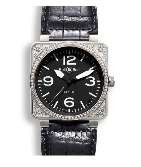 Model: BR 01 92 TOP DIAMOND - CASE = [Material:Stainless Steel], [Case Diameter:46], [Water Resistant:100 Meters - 330 Feet], [Crystal:Scratch Resistant Sapphire], DIAL = [Color:Black with Luminescent Hands], MOVEMENT = [Type:Automatic], BAND = [Type:Black Alligator Leather], (Usually ships in 2 to 4 weeks.)