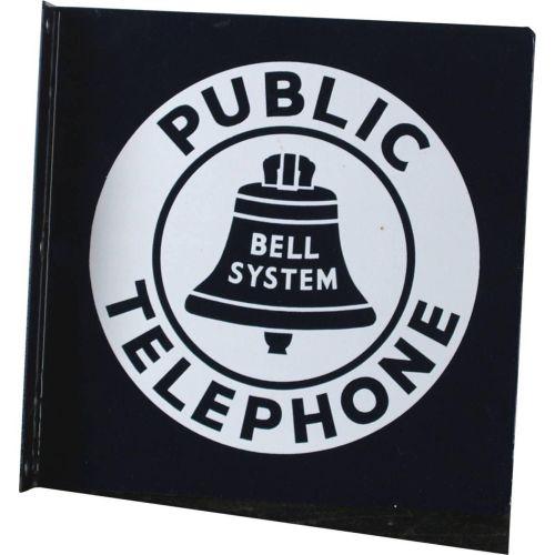 Bell System Public Telephone 2-sided Porcelain Enamel Flange Sign Mint Condition.
