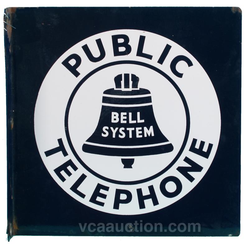 Bell System Public Telephone Double Sided Flange Porcelain Sign C. 1950's - 11" x 11" Near Mint Condition