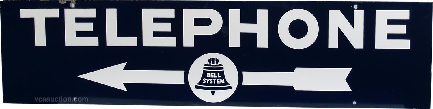 Bell System "TELEPHONE" Double Sided Porcelain Sign w/ arrow - 34" x 8"