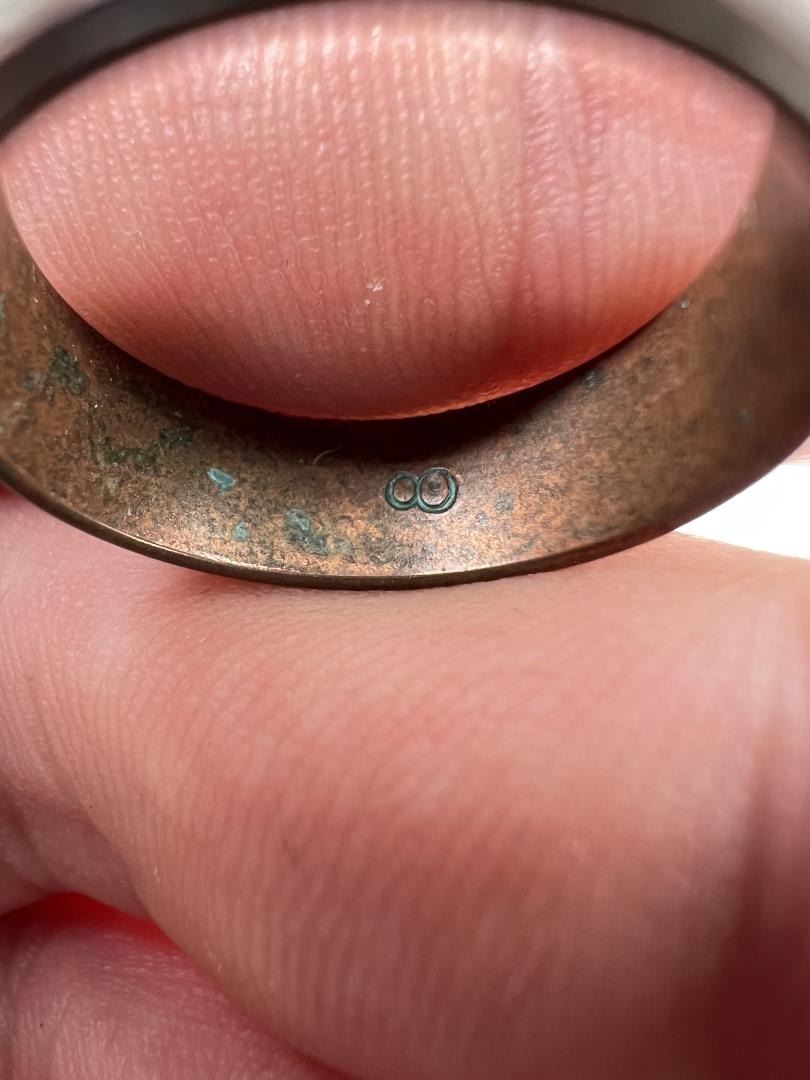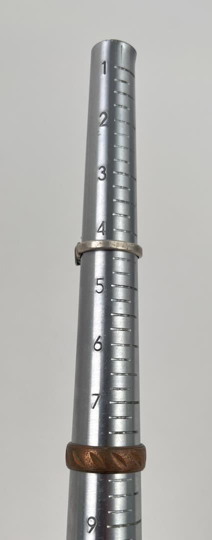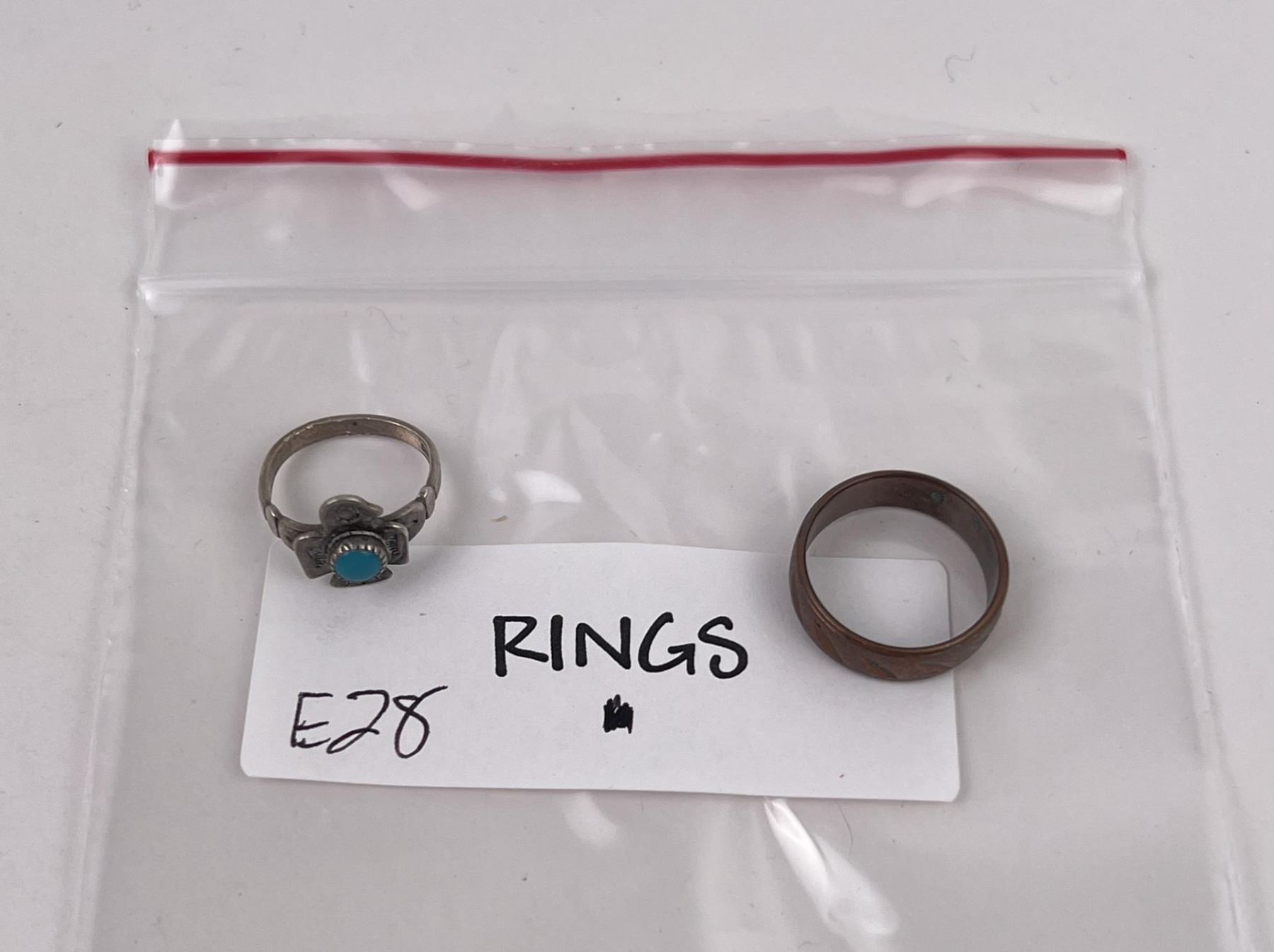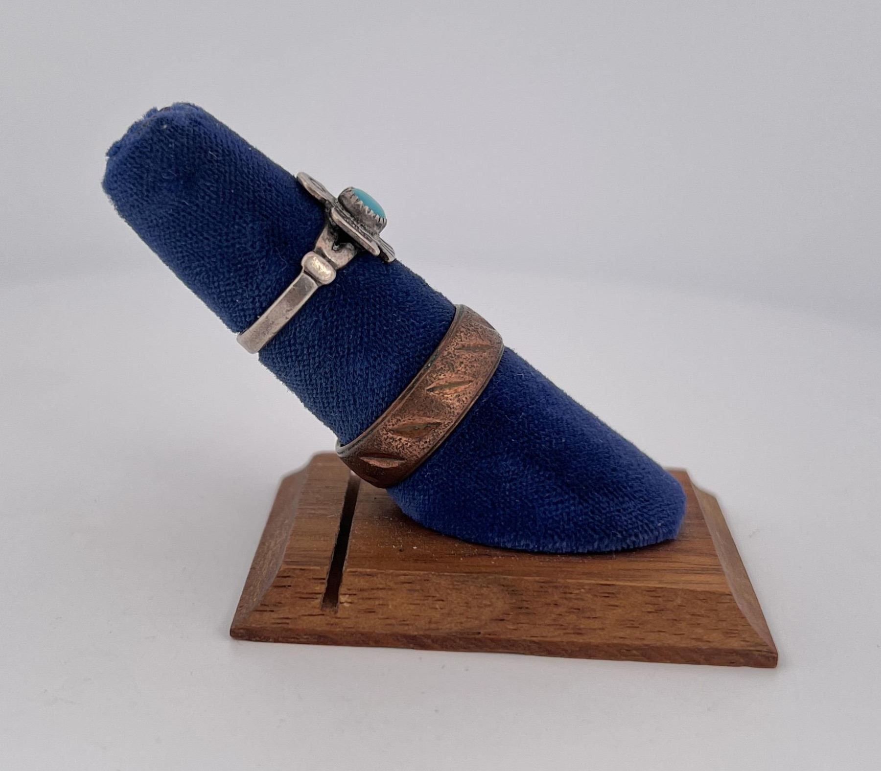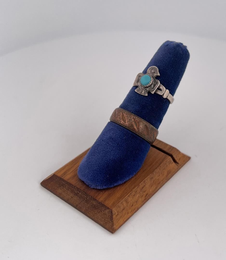The thunderbird ring is bell trading post (size 4 1/4). The other is copper (size 8). Allard Auction Collection Inv: NO TAG