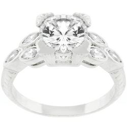 The sterling silver engagement ring features a textured band with marquise and round cut clear zirconia set to leave her with a lasting impression. Our genuine rhodium finish is achieved using an electroplating process that coats the item with heavy layers of rhodium a close cousin to platinum which gives our jewelry a platinum luster.Base Metal: .925 Sterling SilverStyle: , Setting Type: Prongs| BezelMaterials: , Stone Cut: Round| MarquiseCarat Weight: 2.8 (ct)Color: , Plating Color: Silvertone FinishChain Clasp: 14.50Ring Band Width: 2 (mm)Bracelet Size: 22 mm L x 8.2 mm W x 7.2 mm HStone Size: 8 (mm)| 4 (mm) x 2 (mm)Type: Ring