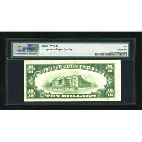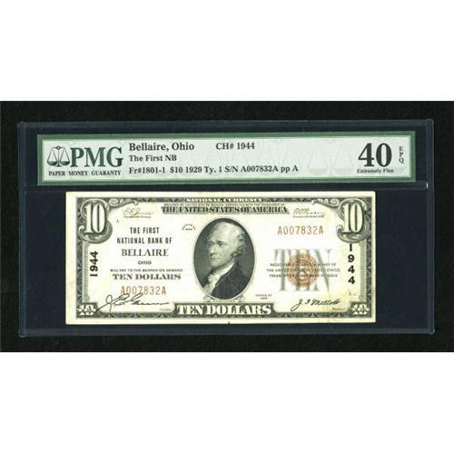 <B>Bellaire, OH</B></I> - $10 1929 Ty. 1 <B>The First NB</B></I> Ch. # 1944<BR> This is only the second time that we have had a Type 1 Ten on this bank. Officers are J.E. Green and J.F. Mellott. <B>PMG</B></I> <B>Extremely Fine 40 EPQ.</B></I><BR><BR><b>Shipping:</b> Coins & Currency (<a target="_blank" href="http://www.heritageauctions.com/common/shipping.php">view shipping information</a>)