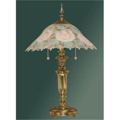 Height: 24" Width: 14" Bulb: 2 - 60W Medium (Supplied) This table lamp is featured in our Satin Roman Bronze finish.The striking glass shade is reverse hand painted. The 2 sockets are controlled by chain pulls. Available Finishes Satin Roman Bronze Click to Enlarge <BR>Free Shipping in the continental US