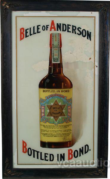 Belle Of Anderson Reverse Glass Sign, "Bottled In Bond", S.J. Greenbaum Distiller, KY. in wood frame - 24" x 41"