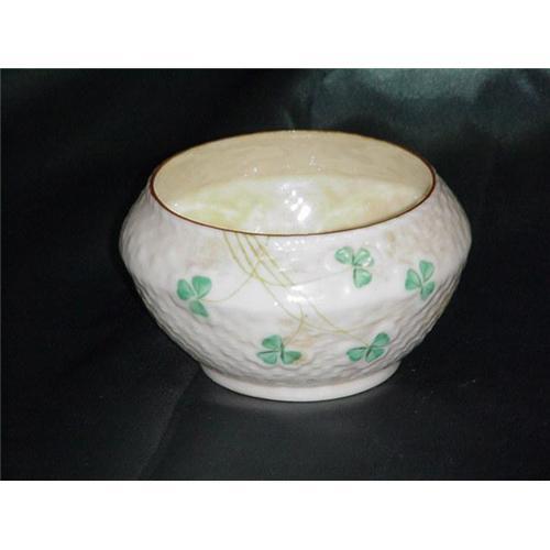 Belleek Bowl. 3 3/4" in diameter x 2 1/8" tall. Hand painted Shamrock design. Green Mark