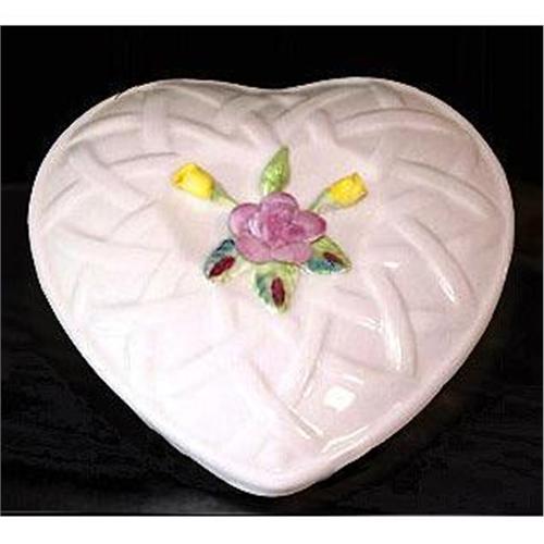 This beautiful Belleek Cottage Rose Heart powder or trinket jar was issued in the year 2000 and bears their millenium hallmark. Measuring 4 x 4 x 2 1/2 inches and is in excellent condition.