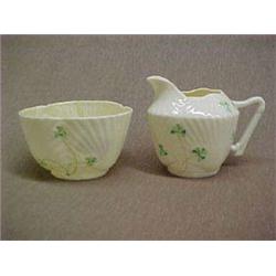 Belleek Harp Shamrock cream and sugar, cream is 3-1/4" h. and sugar is 2-1/4" h., 4th mark