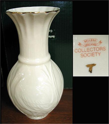 Belleek Heron Vase with box. Belleek Ireland Collectors Society Mark. No chips or cracks, stands 5 1/2" tall