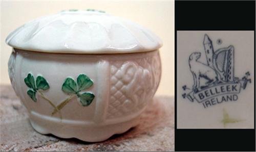 Belleek Nadine Trinket box standing 2 1/4" tall with box no chips or cracks