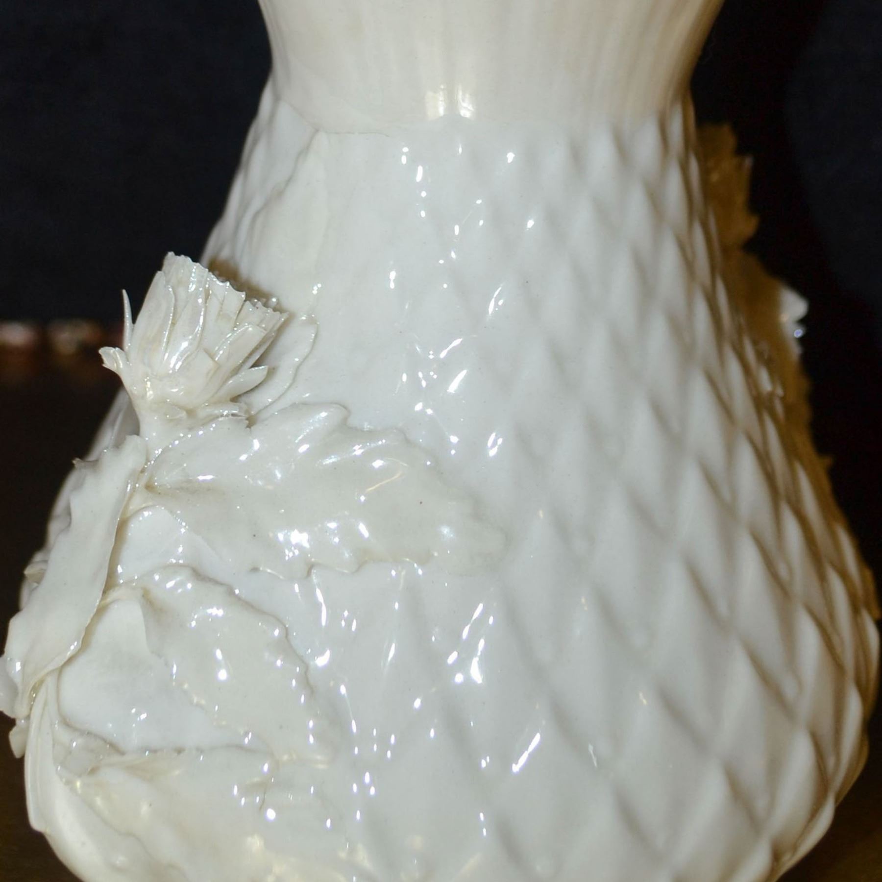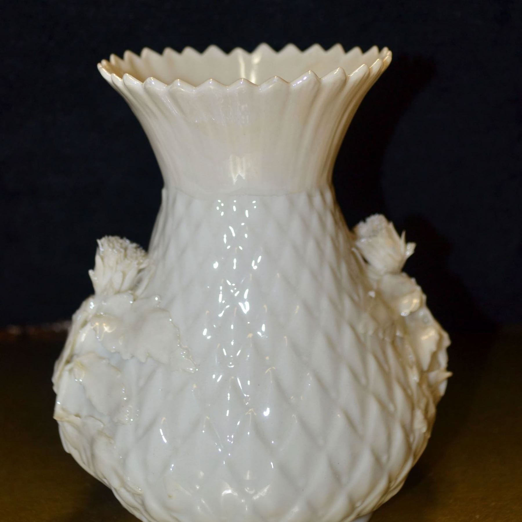Belleek Porcelain Ivory Floral Vase, Green Mark, Rare
