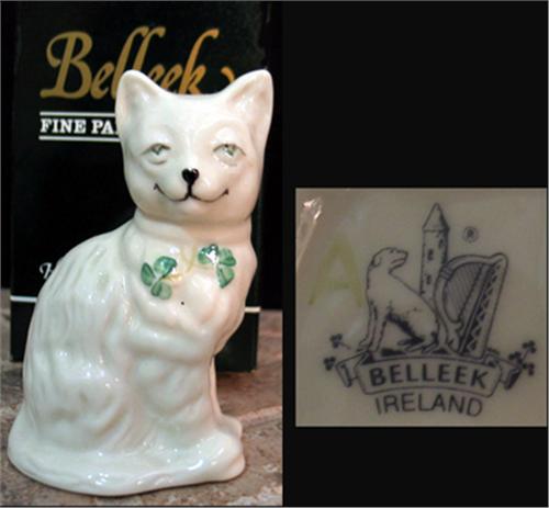 Belleek Quizzical Cat Ninth Mark c1997 - 1999 no chips or cracks stands 4" tall with original box