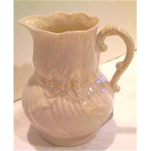 This fantastic Belleek Creamer is molded with a ribbon and bow tied around its middle and is in SUPERIOR condtiion with no chips, cracks, dings or hairlines. The creamer measures 3" in diameter and stands 3.50" tall. It is marked on the bottom with the familiar green Belleek Logo.